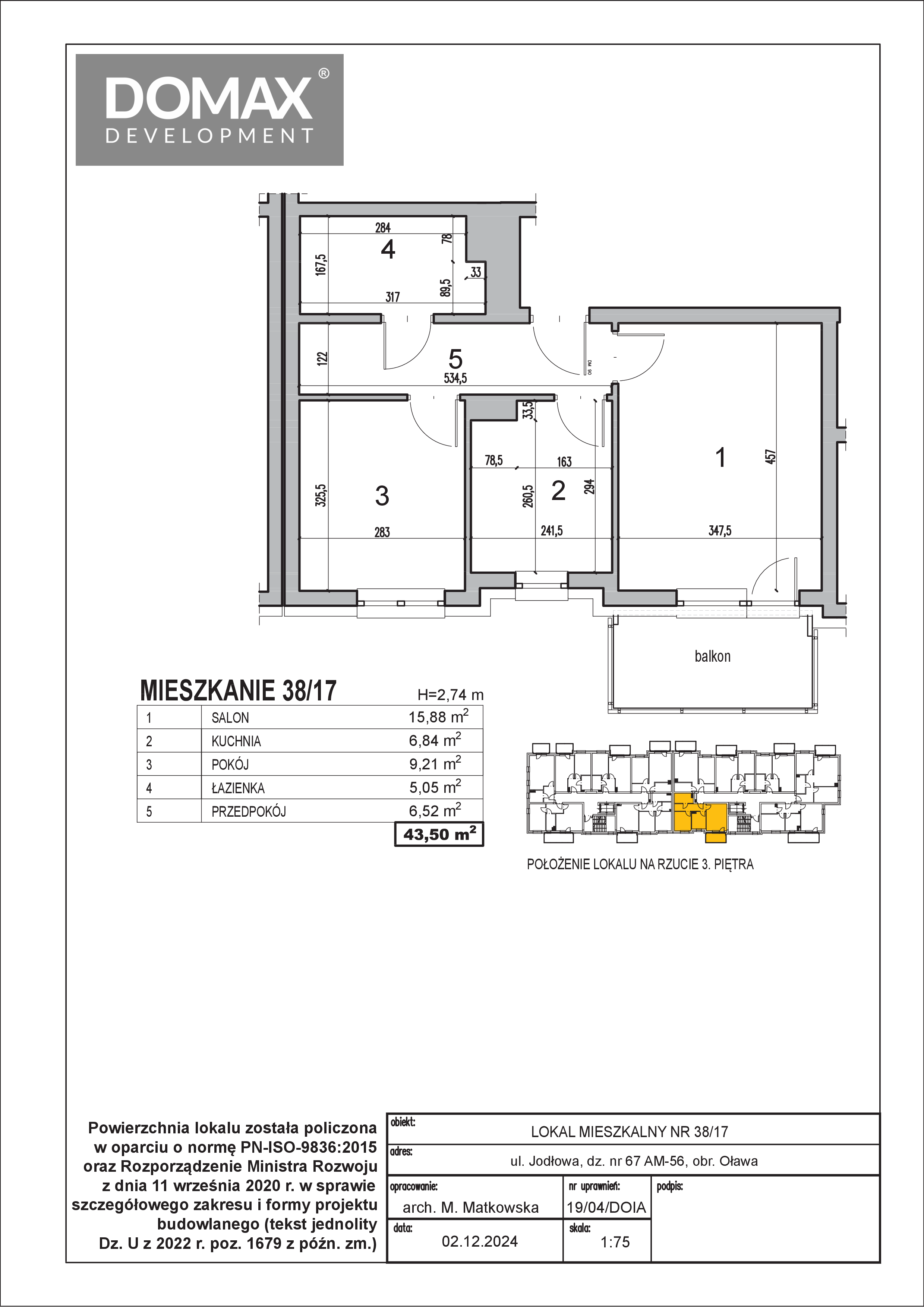⇒ Piętro P3 ⇒ 43,50 m²